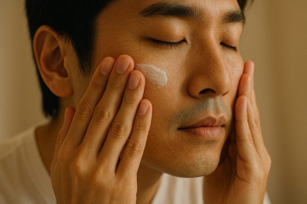 化粧水で与えた水分をしっかりと閉じ込めるため、セラミド配合の乳液やクリームでフタをします。これも同様に、手のひらで少し温めてから、優しくハンドプレスでなじませます。特に乾燥しやすい目元や口元、カミソリ負けしやすいあご周りは、指の腹で優しくトントンと重ね付けすると、保護効果が高まります。