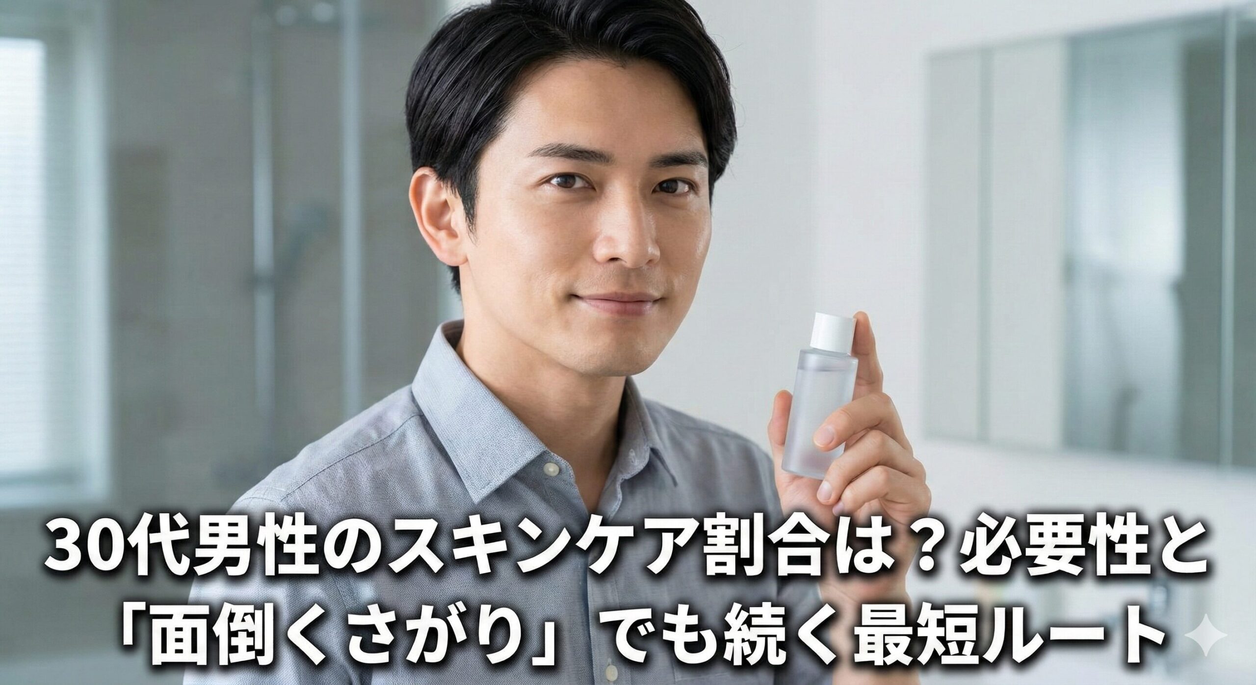 信頼できる最新データを用いて「30代男性スキンケアのリアルな割合(世の中の普通)」を明らかにし、なぜ今やる必要があるのかという「医学的な必要性」、そして忙しいあなたが明日から確実に実践できる「最低限の正解(ミニマムスキンケア)」だけを、ロジカルにお伝えします。