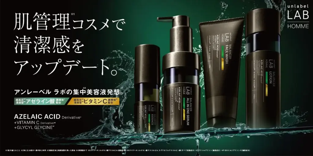 A. 通常のアンレーベル ラボシリーズが、主に女性の多様な肌悩みに応えるラインナップであるのに対し、オムシリーズは男性特有の「皮脂バランスの乱れ」や「シェービングによるダメージ」などに特化している点が大きな違いです。そのため、アゼライン酸誘導体をキー成分に据え、よりさっぱりとした引き締まるような使用感に調整されています。